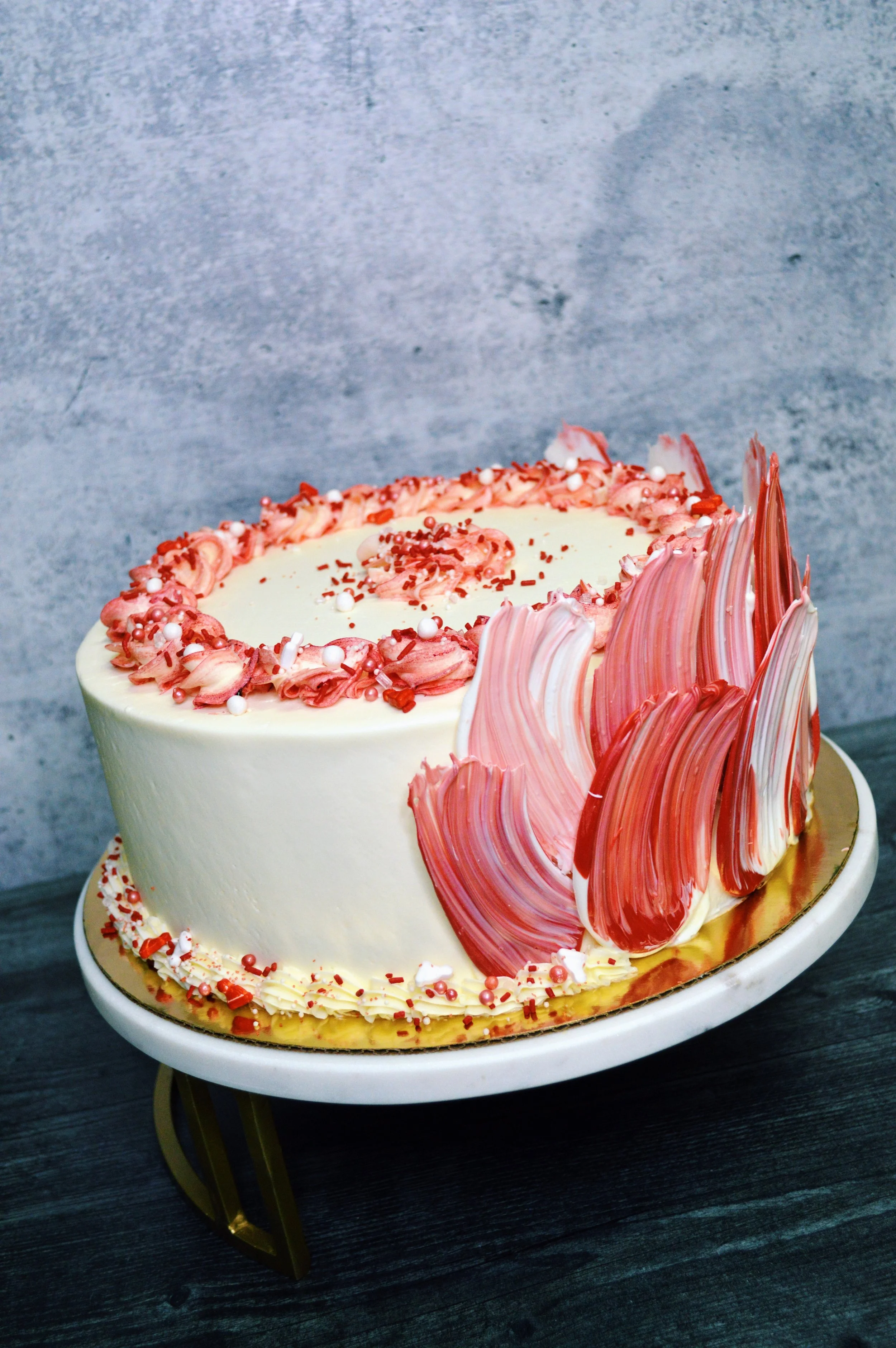 Cake Menu Cake Flavors 6-inch / 8-inch - $55 / $70 THE CONFETTI CAKE 3-layers of moist confetti cake filled with vanilla buttercream and sprinkles THE BIRTHDAY CAKE 3-layers of moist vanilla cake filled with chocolate buttercream and chocolate chips THE VANILLA UBE CAKE 3-layers of moist vanilla cake filled with ube pastry cream and vanilla buttercream chocolate buttercream and chocolate chips THE CHOCOLATE OVERLOAD CAKE 3-layers of moist chocolate cake filled with chocolate ganache, chocolate buttercream and chocolate chips THE CHOCOLATE RASPBERRY CAKE 3-layers of moist chocolate cake filled with homemade raspberry preserves and frosted with vanilla buttercream THE RED VELVET CAKE 3-layers of moist red velvet cake filled with cream cheese frosting THE CARROT CAKE 3-layers of moist carrot cake filled with cream cheese frosting **CUSTOM CAKE REQUESTS** Inquire within. Customer special requests/custom decorations subject to additional charge.